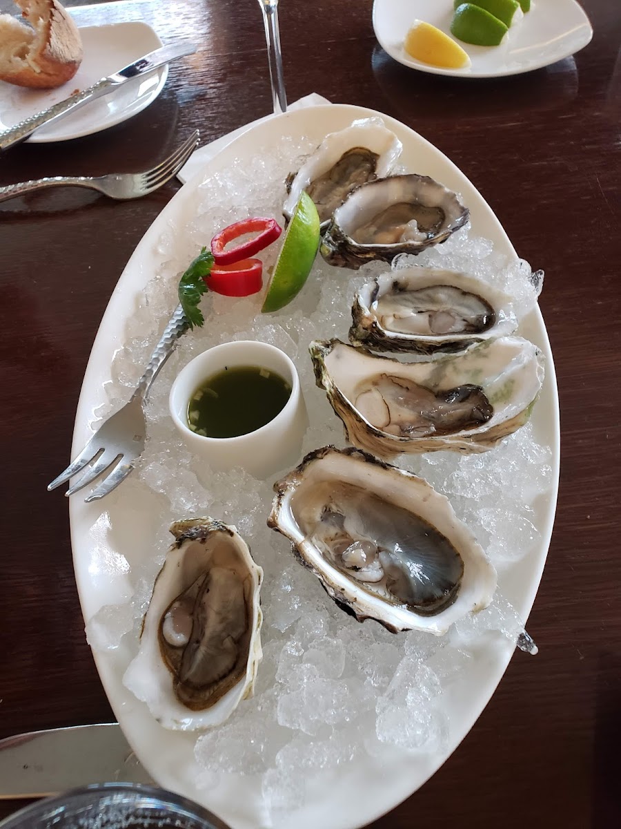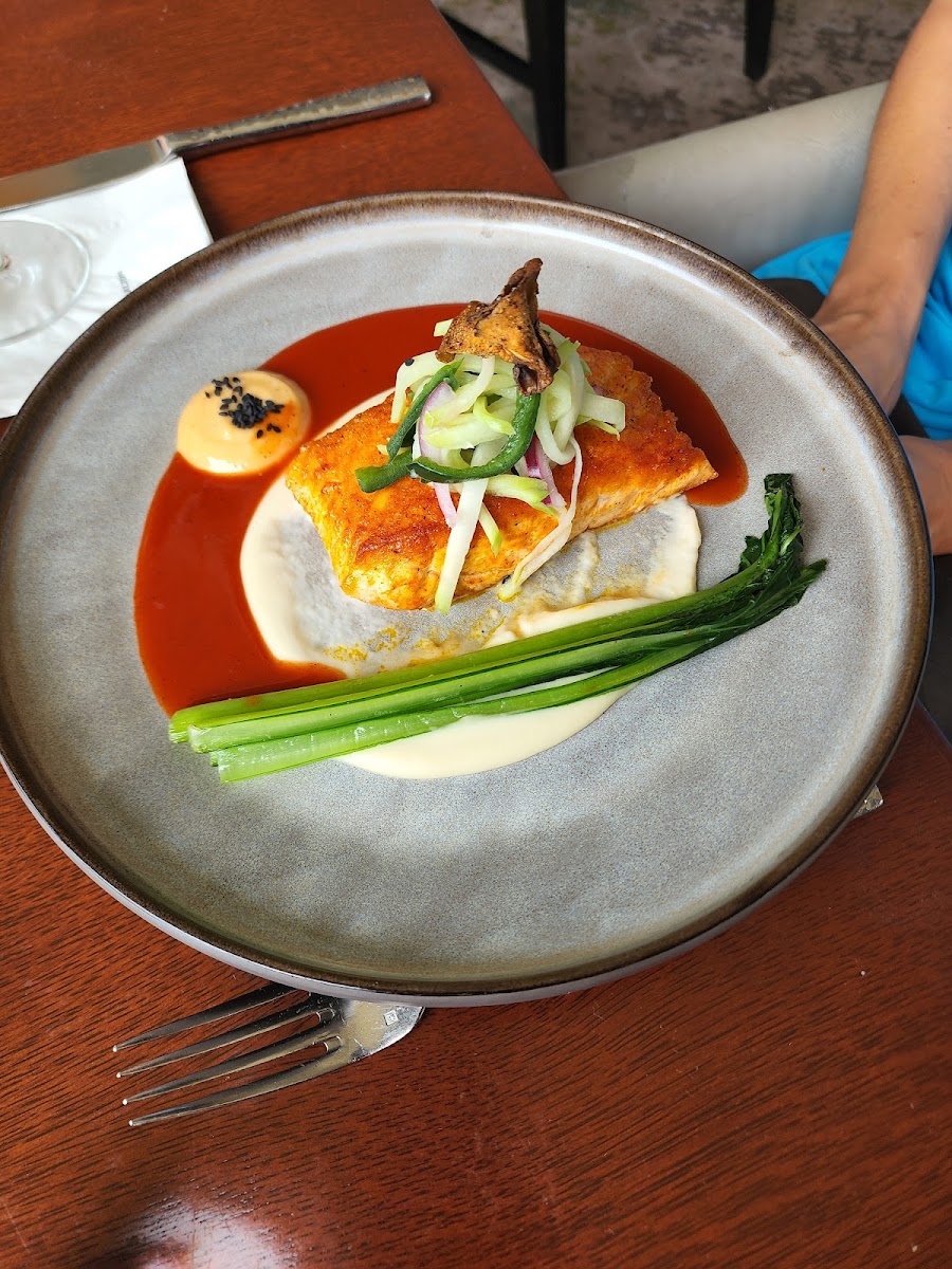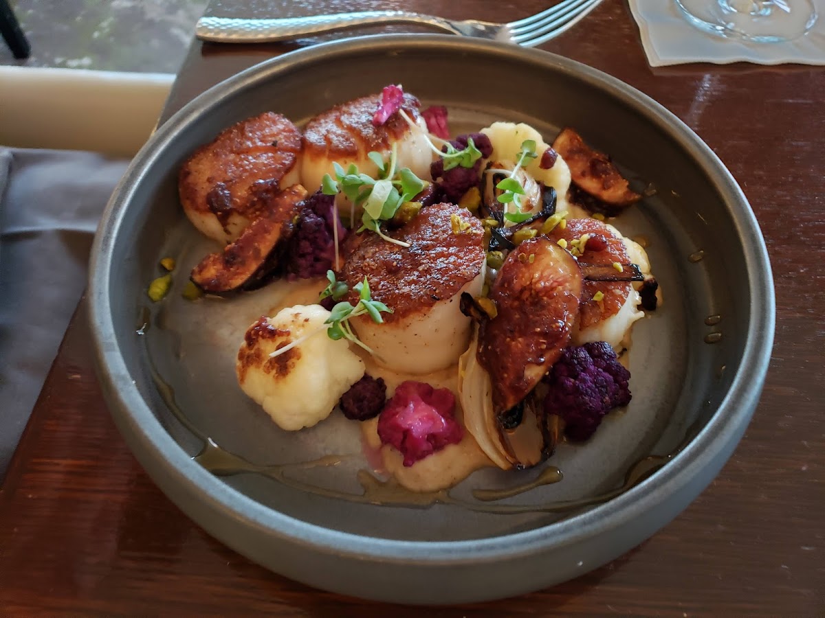 I loved the brussel sprouts and the pork/scallops entree, we also got the salmon and the pork pineapple bao buns, those were really good too, salmon was good, I have realized I really prefer raw salmon sushi but scallops were the best. Beautiful view & great service.