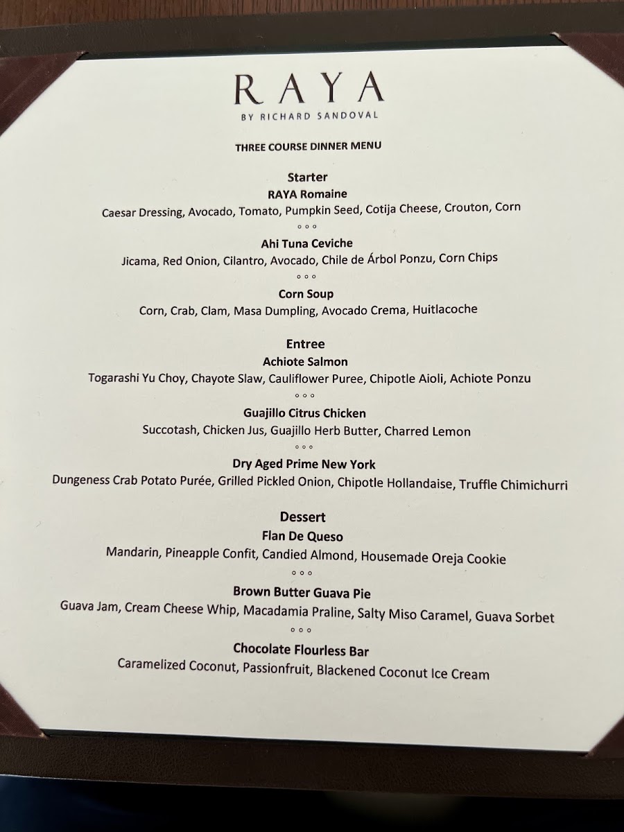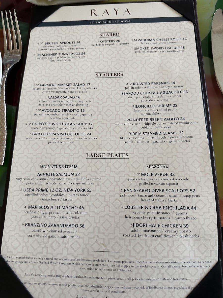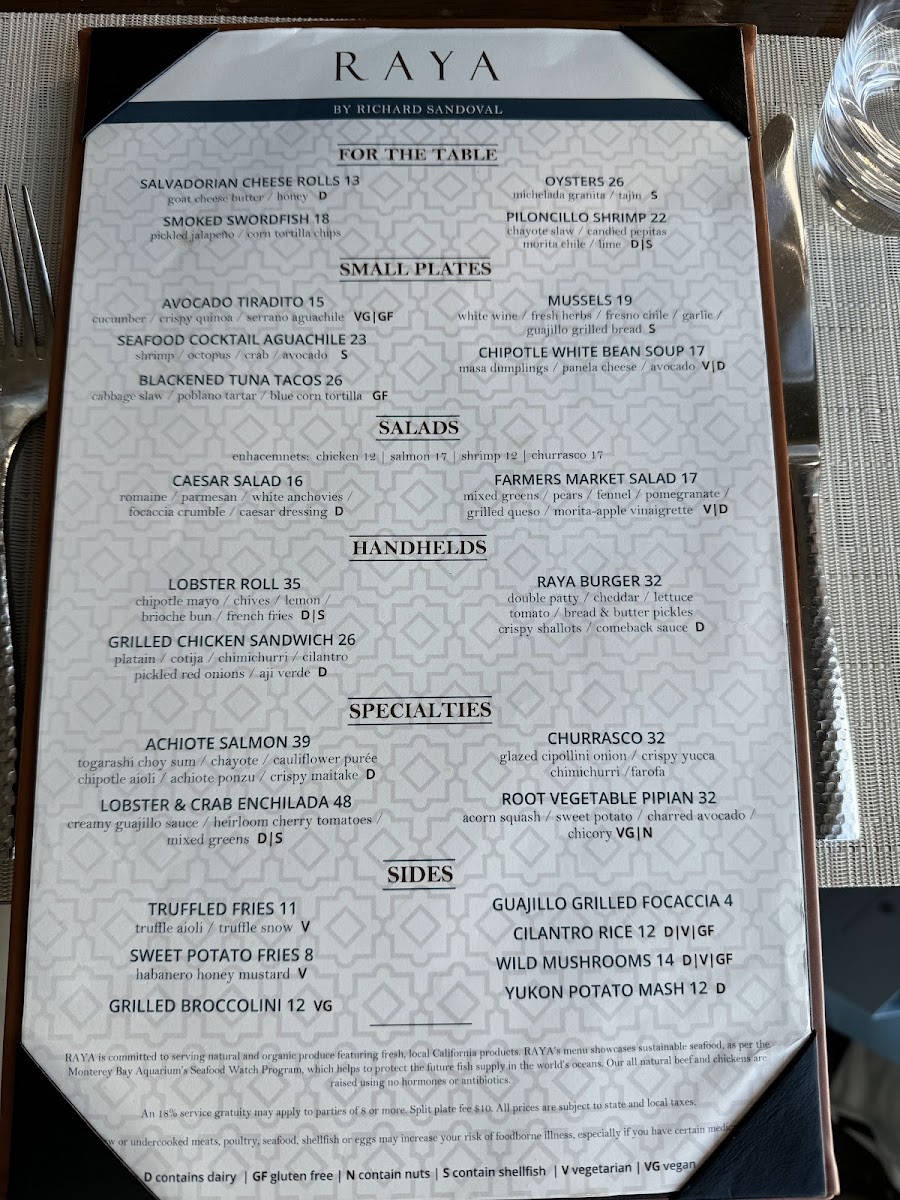 RAYA - Dana Point Menu